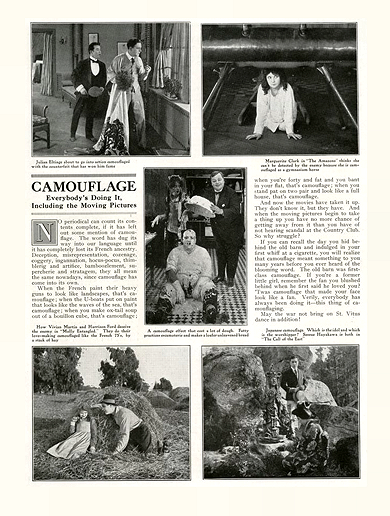 Above These three photographs were a reader’s contribution to Popular Mechanics, where they were published in Vol 31 Issue 2 (1919) of that magazine. The photographs were taken by A.J. Viken of Waterloo, Iowa, as examples of makeshift camouflage. Here is the text he submitted—
